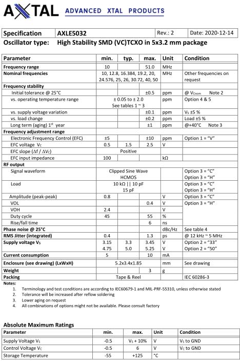 AXTAL晶振,AXLE5032晶振,AXLE5032-V-5-C-05-4F_Rev.2-10.000MHz晶振,5032mm體積的石英晶體振蕩器,有源晶振,該產品可驅動2.5V的溫補晶振,壓控晶振,VC-TCXO晶體振蕩器產品,電源電壓的低電耗型,編帶包裝方式,可對應自動高速貼片機自動焊接,及IR回流焊接(無鉛對應),為無鉛產品,超小型,質地輕.產品被廣泛應用到集成電路,程控交換系統,無線發射基站.AXTAL專注于頻率控制產品和壓電傳感器的設計,開發,生產,測試和銷售,其中包括晶體諧振器,晶體振蕩器和包含石英晶振和其他壓電晶體諧振器的頻率控制模塊,如Langasite(LGS),Langatate( LGT)以及SAW諧振器。AXTAL的OCXO for Space應用程序列在ESA EPPL中。