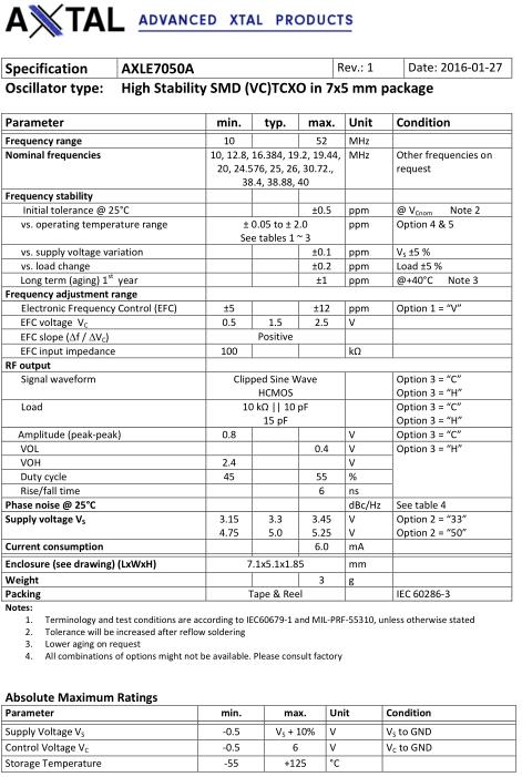 AXTAL晶振,AXLE7050A晶振,AXLE7050A-V-5‐C-05-4F_Rev.1-10.000MHz晶振