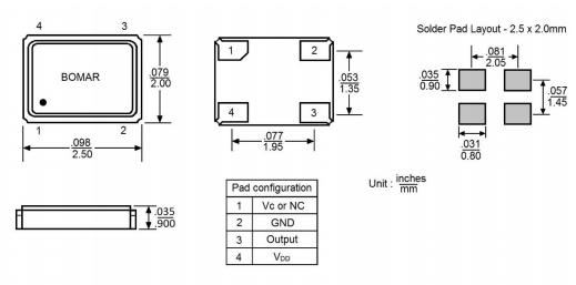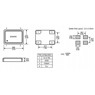 Bomar晶振,B1701-DEAS3R-20.000000晶振,TCXO溫補晶振