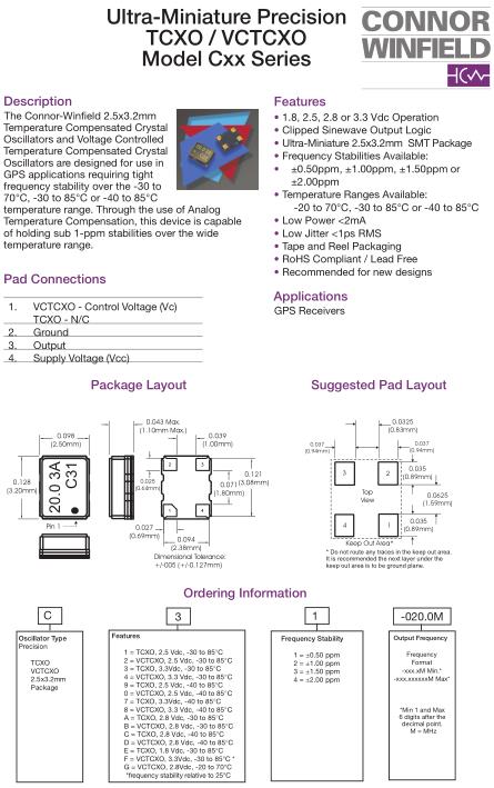 Connor-winfield晶振系列的TCXO溫度補(bǔ)償晶體振蕩器具有卓越的性能,出色的一致性和穩(wěn)定的長期特性,使得其成為要求苛刻的通信,數(shù)據(jù)通信和電信應(yīng)用中成為首選。所有的推薦封裝類產(chǎn)品都具有正弦波和HCMOS輸出,并且商用到擴(kuò)展或工業(yè)溫度范圍。康納溫菲爾德(Connor Winfield)已經(jīng)設(shè)計(jì)出具有低相位噪聲和低抖動(dòng)的高穩(wěn)定性和可靠性的OCXO振蕩器。