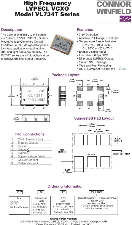 康納溫菲爾德晶振,VL734T晶振,VL734T-060.00M晶振