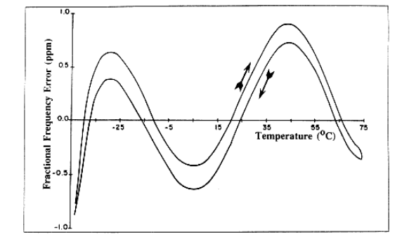 Retrace限制了在OCXO開關(guān)循環(huán)的應(yīng)用中使用OCXO可實現(xiàn)的精度,當溫度循環(huán)范圍為0°C至60°C和-55°C至+85°C時,TCXO中典型的滯后值范圍為1ppm至0.1ppm,在少數(shù)SC切割(MCXO)諧振器中觀察到小于1×10-8的滯后,MCXO早期模型中典型的MCXO石英晶體諧振器滯后是108中的幾個部分,典型的OCXO回掃規(guī)格,在約25°C的24小時關(guān)閉期后,范圍從2x 10-8到1x10-9,在關(guān)閉期間的低溫儲存和延長關(guān)閉期通常會使回掃更糟,滯后和回掃的原因尚不清楚,迄今為止的實驗證據(jù)尚無定論.