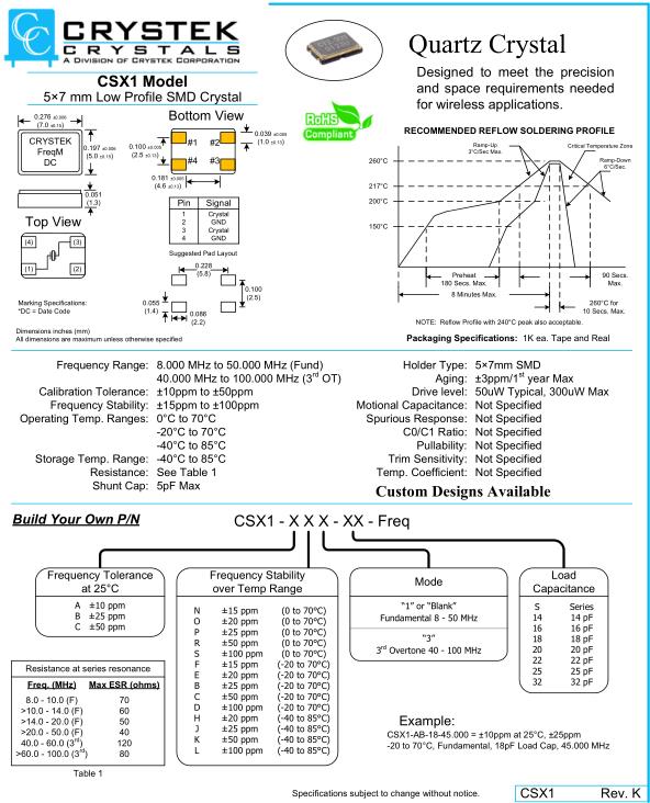 Crystek晶振,CSX1晶振,CSX1AS116-20.000M晶振