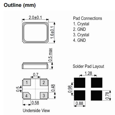 FrequencyStability頻率穩定度 ±20ppm 高度PackageHeight: 0.50mm