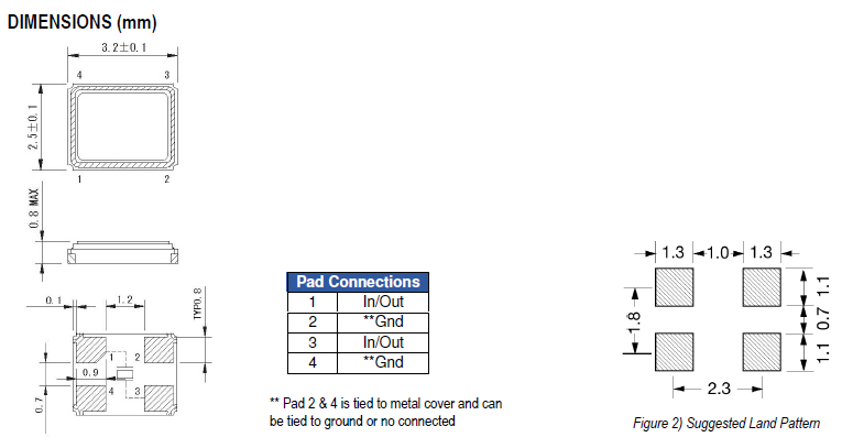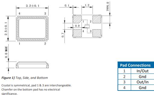 ECS-320-18-33Q-DS石英貼片晶體,伊西斯3225晶振ECX-33Q 尺寸圖