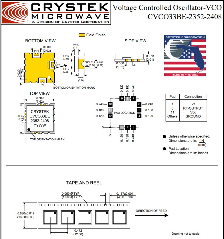 衛星通信系統和基站等應用CVCO33BE-2352-2408,Crystek Corporation一直提供頻率產品,包括石英晶體、XOs(時鐘振蕩器)、TCXOs(溫度補償晶體振蕩器)、VCO(壓控振蕩器),VCXOs(壓控晶體振蕩器)。Crystek運營著兩個致力于頻率控制的部門。Crystek晶振致力于開發和制造使用石英諧振器的頻率產品。Crystek Microwave為微波行業開發頻率控制和支持產品。其它產品包括:PLL(鎖相環)頻率合成器、RedBox VCOs、RF同軸電纜組件、RF電纜連接器、散裝RF同軸電纜、RF功率檢波器、濾波器、衰減器、DC模塊、無源倍頻器、RFPRO(袖珍參考振蕩器)、連接器放大器、VCO評估板和 看見 基于時鐘振蕩器和VCO。