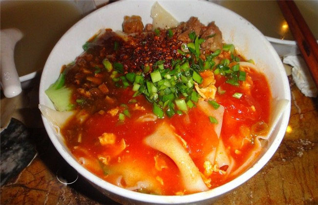 沒吃過吧!這字怎么寫?有技術含量?跟我學一點飛上天,黃河兩道彎,八字大張口,言字往里走,東一扭,西一扭,左一長,右一長,中間夾著個馬大王,月字旁,心字底,留個鉤鉤掛麻糖,坐個車車逛咸陽.這就是(油潑辣子biang biang 面)!