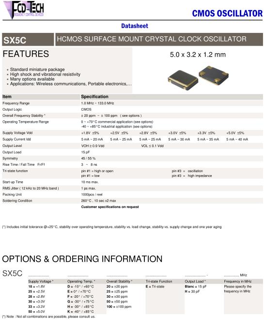 FCD-Tech晶振,SX5C晶振,SX5C-28F20EH-8.000MHz晶振