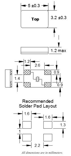 福克斯晶振C5BQ,FQ5032B-20.000無(wú)源晶體 尺寸圖