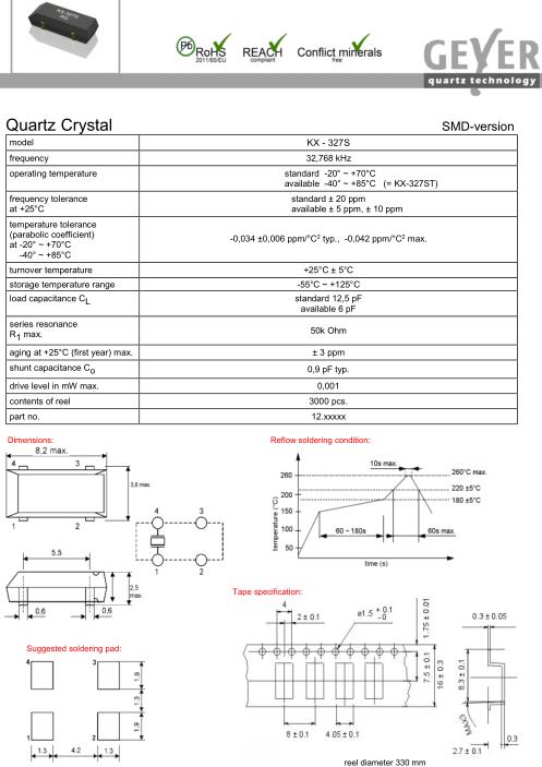 | GEYER晶振規格 | 單位 | KX-327S晶振頻率范圍 | 石英晶振基本條件 | |