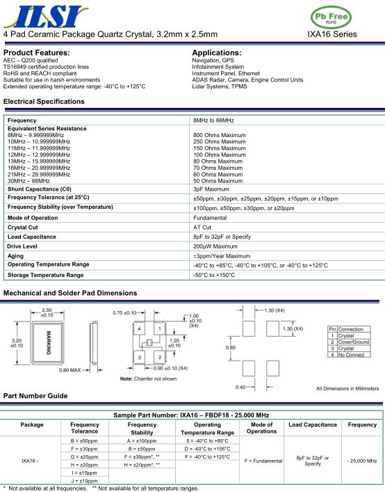 ILSI晶振,IXA16_A晶振,IXA16–FBDF18-25.000MHz晶振