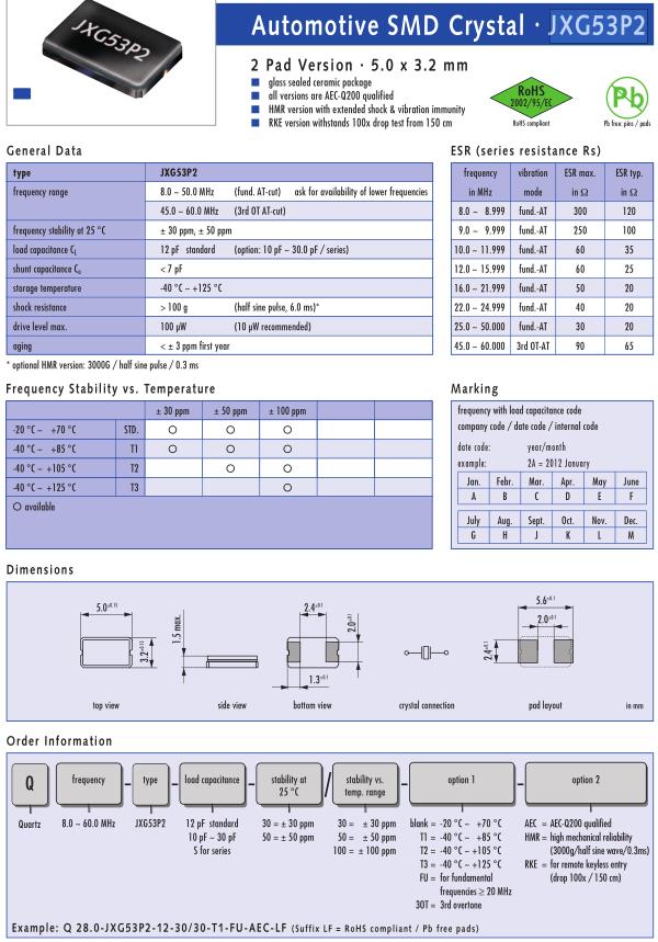 Jauch晶振,JXG53P2晶振,Q28.0-JXG53P2-12-30/30-T1-FU-AEC-LF晶振