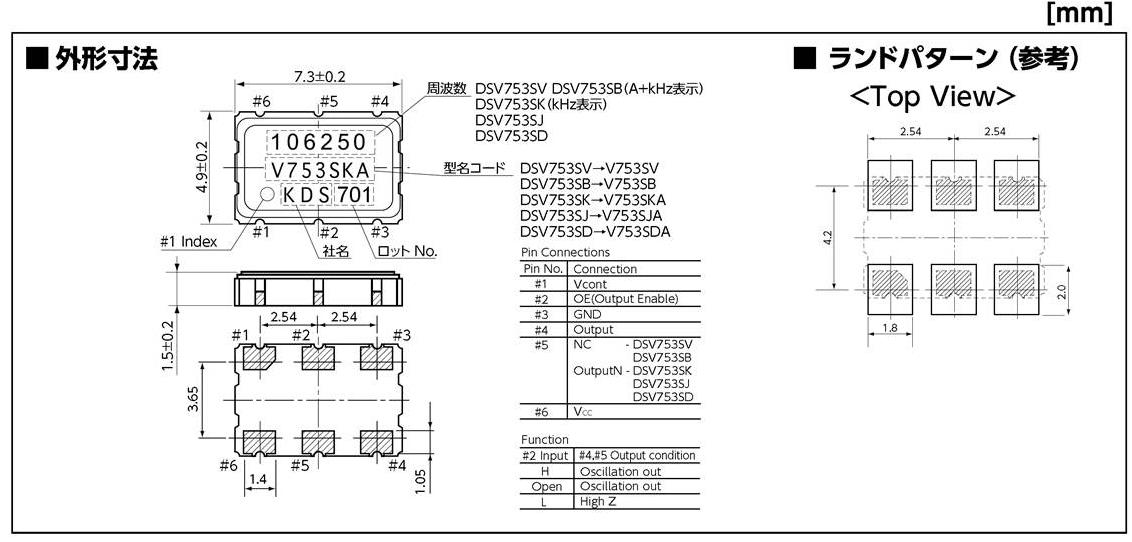 KDS晶振,DSV753SV晶振,數字影像專用晶振,KDS晶振性能穩定,精度高,體積小,在惡劣環境也能正常工作,TCXO溫補晶振溫度穩定度可達±0.5PPM.在普通晶體諧振器和振蕩器中,我們可接受高頻率和偏頻率以及少數量的高精度寬溫的制作. 具有最適合于移動通信設備用途的高穩定的頻率溫度特性.為對應低電源電壓的產品.(可對應DC +1.8 V±0.1 V to +3.2 V±0.1 V )高度:最高1.0 mm,體積:0.007 cm3,重量:0.024g,超小型,輕型.低消耗電流,表面貼片型晶振產品.(可對應回流焊) 無鉛產品.滿足無鉛焊接的回流溫度曲線要求.