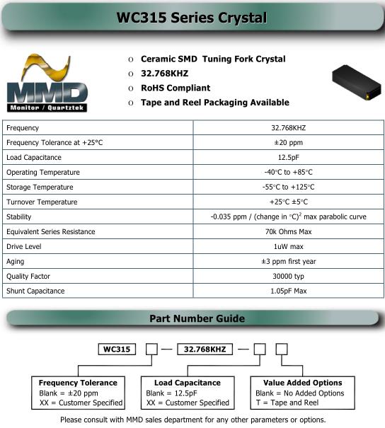 MMDCOMP晶振,WC315晶振,WC315XX-32.768KHZ-XXT晶振