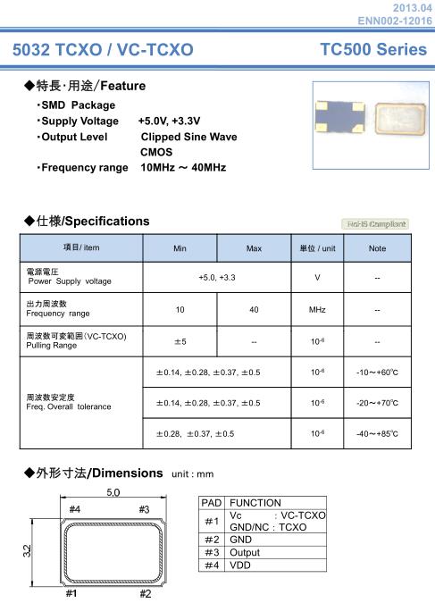 NAKA晶振,TC500晶振,TCXO溫補晶振