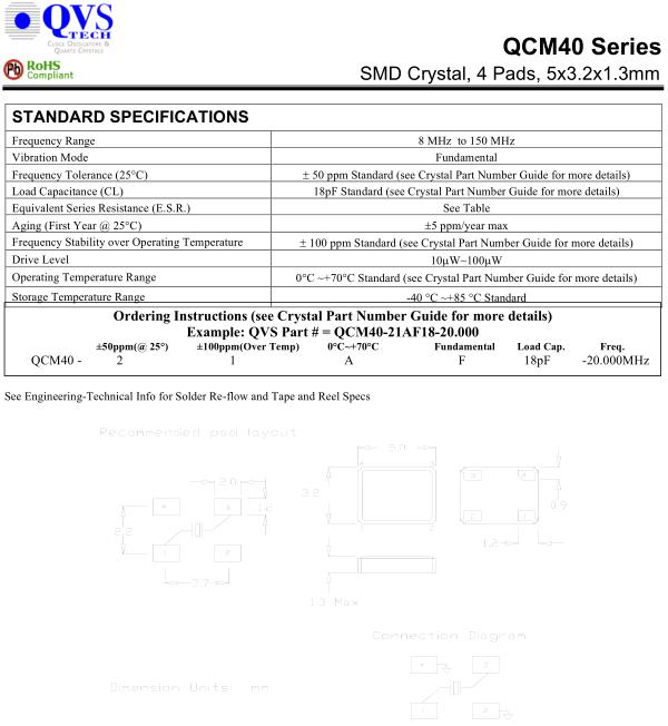 | Load Capacitance (CL) | 18pF Standard (see Crystal Part Number Guide for more details) |