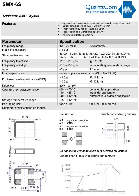 | QuartzCom晶振規格 | 單位 | SMX-6S晶振頻率范圍 | 石英晶振基本條件 |