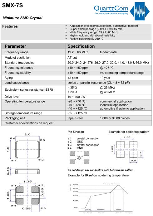 | QuartzCom晶振規(guī)格 | 單位 | SMX-7S晶振頻率范圍 | 石英晶振基本條件 |