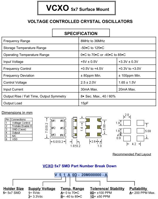 STD晶振,O-7晶振,V51A0D-20M000000-A晶振,VCXO壓控晶振,壓控石英晶體振蕩器基本解決方案,PECL輸出,輸出頻率60MHz到200MHz之間,出色的低相位噪聲和抖動,三態功能,應用:SDH/SONET,以太網,基站,筆記本晶振應用,符合RoHS/無鉛.