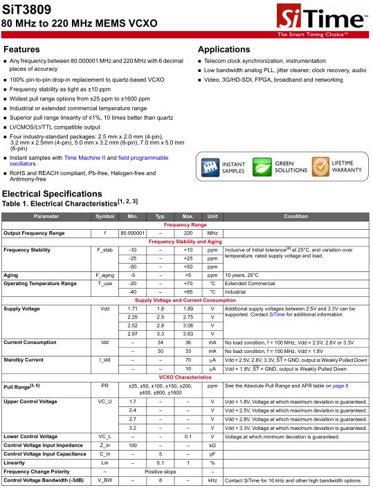 SiTime晶振的可配置解決方案幫助客戶提高產品性能,縮小產品尺寸,提升產品可靠性,并在市場競爭中脫穎而出。SiTime產品采用標準半導體制造工藝和高量產塑料封裝技術的生產流程,提供業界強大的供貨能力和簡短的交貨時間.并且SiTime晶振向市場供應優質的有源晶振,VCXO壓控晶振,可編程振蕩器等產品。SiTime晶振,SiT3809晶振,SiT3809AC-C2-33EH-120.000000D晶振.