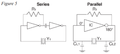 “串聯(lián)”諧振晶體用于電路中 在振蕩器中沒有反應(yīng)性成分反饋循環(huán).“平行”共振晶體是有意的 用于含有反應(yīng)元件的電路中(通常是電容)在振蕩器反饋回路.