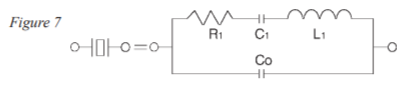 圖7所示的等效電路是一個電路在a點(diǎn)操作時石英晶體振蕩器石英晶體單元的描述自然共振頻率.Co或分流器電容,表示晶體的電容電極加上支架和引線的電容.R1、C1和L1構(gòu)成了晶體的“運(yùn)動臂”稱為運(yùn)動參數(shù).的運(yùn)動電感(L1)表示振動質(zhì)量晶體單元的.運(yùn)動電容(C1)表示石英的彈性和電阻(R1)表示石英內(nèi)部發(fā)生的體積損失.