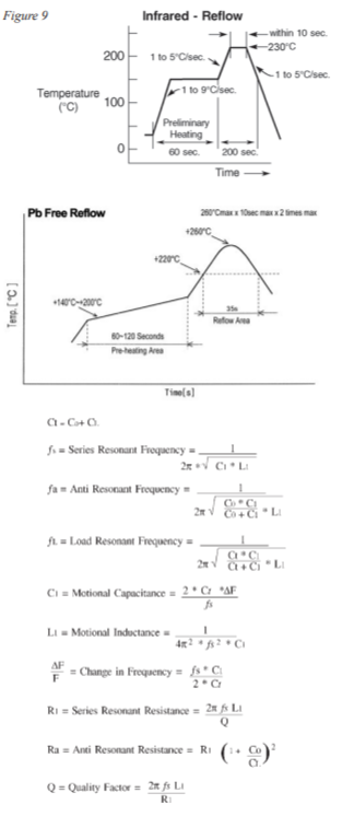 品質(zhì)因數(shù)(Q)晶體單位的“Q”值是單位的度量振蕩的相對質(zhì)量或效率.的晶體單元的最大達(dá)穩(wěn)定性為取決于“Q”值.在上面的圖8中串聯(lián)和并聯(lián)頻率的分離是所謂的帶寬.帶寬越小Q值越高,則其斜率越陡電抗.外部電路電抗的變化組件對高氣壓的影響較小(“可拉性”較小)“Q”晶體,因此這樣的部分更穩(wěn)定.負(fù)載電容計算如果電路配置如圖5所示并聯(lián)版,負(fù)載電容可為由下式計算:Cstray包括引腳到引腳的輸入和輸出微處理器芯片在進(jìn)口晶振晶體上的電容和晶體2個引腳,加上任何寄生電容.作為一個根據(jù)經(jīng)驗,可以假設(shè)Cstray等于5.0 pF.因此,如果CL1 = CL2 = 50pF, CL = 30pF.修剪的敏感性修剪靈敏度是增量分?jǐn)?shù)的一種度量頻率變化值的增量變化的負(fù)載電容.微調(diào)靈敏度(S)表示用PPM/pF表示,計算方法如下方程: